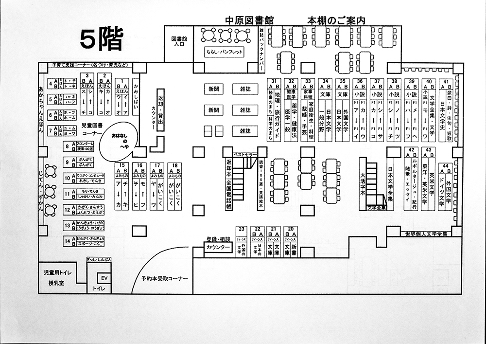 5~6Fという階数のせいか、窓から優しい光がふんだんに入ってきて、雨の日でもゆったりした気分で過ごせる。中原図書館は、居心地のいい場所だった。