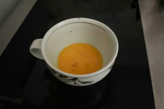 卵をひとつマグカップに割り入れて、混ぜたら、