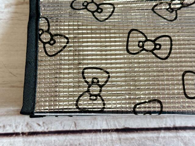 カラーはシルバーで、ブラックのキティちゃんのリボンの総柄デザインがとってもキュート!