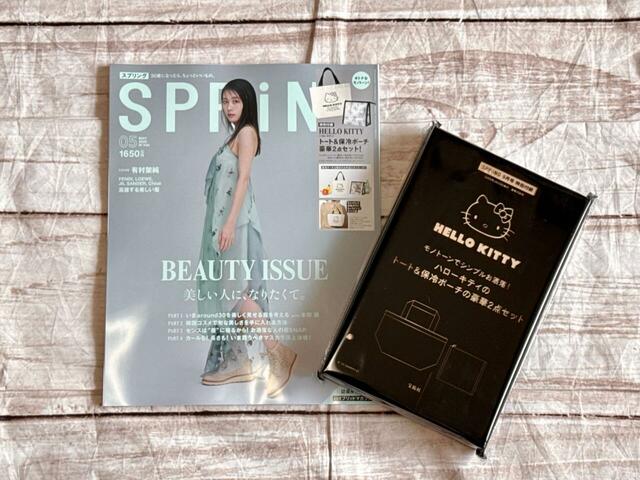 2025年3月22日に発売された『SPRiNG』5月号の付録、ハローキティの「トート&保冷ポーチ」をご紹介しました。