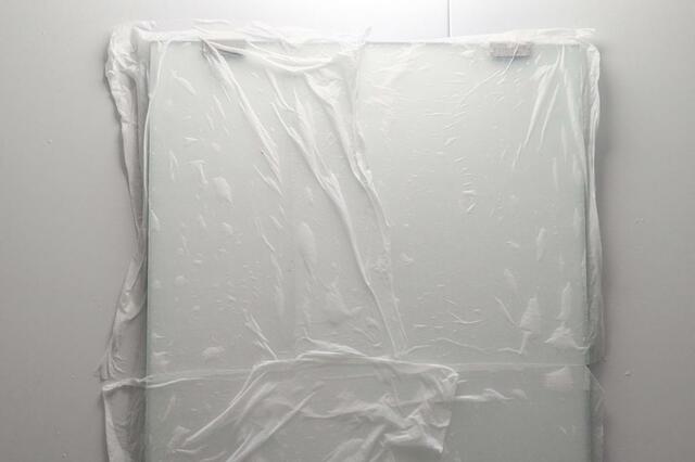 キッチンペーパーにできあがったクエン酸水を染み込ませ、鏡に貼り付けます。