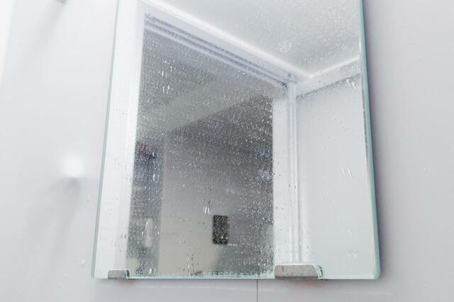 水垢と石鹸カスでお風呂場の鏡がかなり白くなっていたので、さっそく落としてみることにしました。