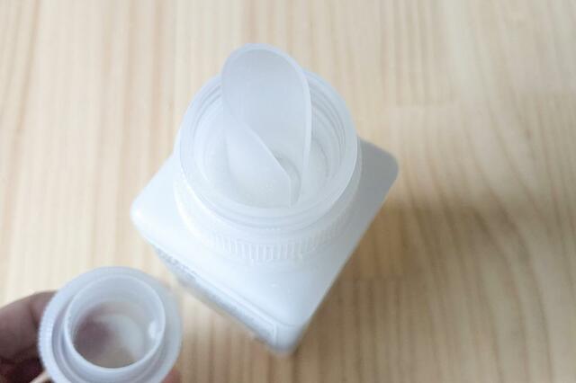 また、キャップが付いているのでさじを別途用意せずとも計量できちゃうんです。