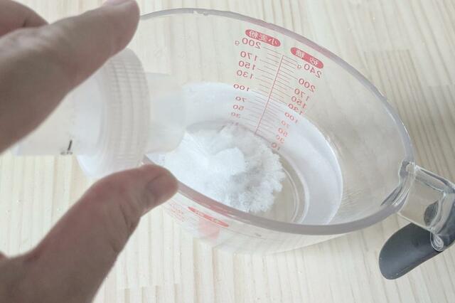 ぬるま湯にクエン酸を入れよく溶かします。今回は濃い目にしました。