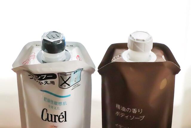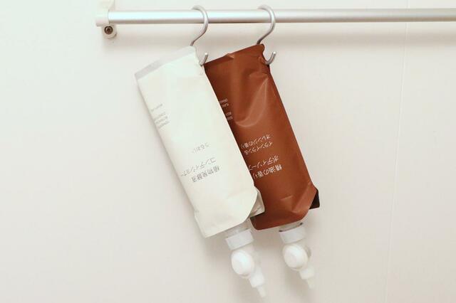 このアイテムが真価を発揮するのが、シャンプーやコンディショナー、ボディーソープなどの詰め替え用と一緒に使うとき!
