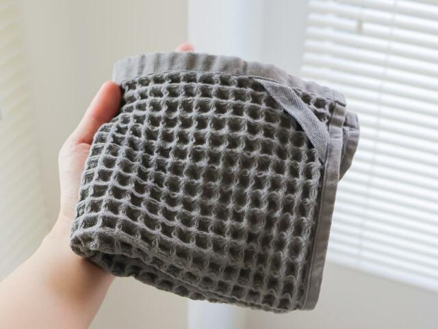 そして、もちろん吸水性も抜群。薄いのに凹凸があるからか、サイズ感以上に水気を吸ってくれます。この薄さのおかげで洗濯後も乾きやすく、生乾き臭の発生も防ぐことができていますよ(mio)