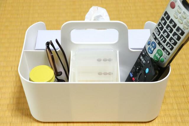 あとはリモコンや常備薬、眼鏡などの小物を収納。