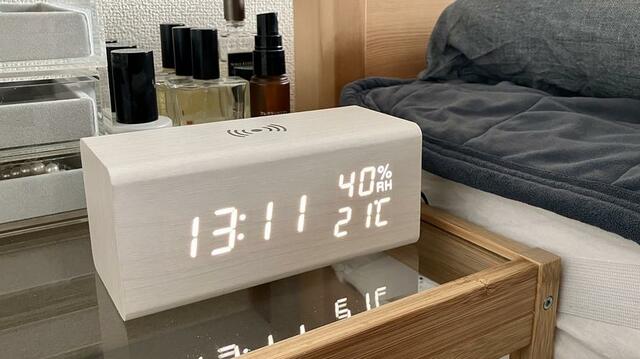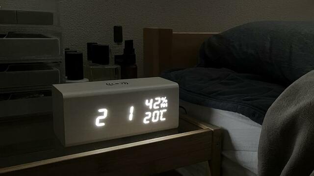 この時計のおかげで、ごちゃつきがちな枕元がスッキリ!