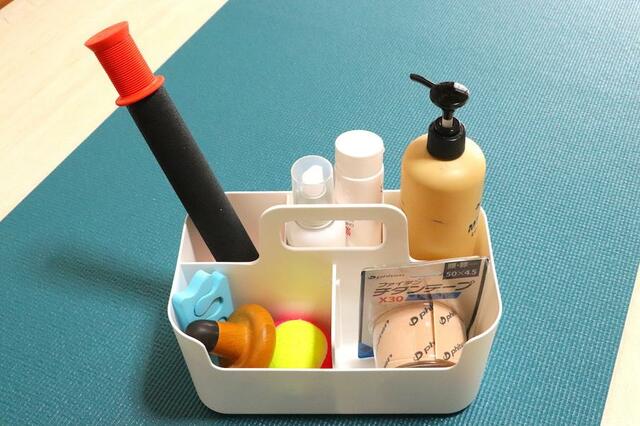 マッサージ道具やローションを収納した、セルフケアボックスも作ってみました。