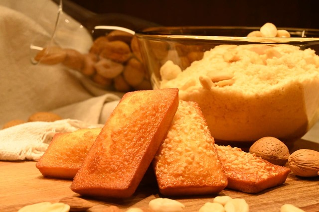 「ビーン トゥ フィナンシェ」のこだわりのひとつがアーモンド。ほかの種に比べて濃厚なシチリア産のアーモンドを使ったフィナンシェで、香り、風味、味が格別です。