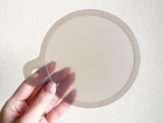 「小」のサイズはお茶碗やスープカップなどにぴったりなサイズ。片面がすべり止めのような質感なので、ポンっと置くだけで蓋になります。