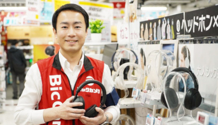 商品について語る久留飛さんの言葉からは、ワイヤレスヘッドホンへの熱量が伝わります。社内資格のビックカメラマイスターを取得しているだけあって、豊富で確かな知識は商品選びにも参考になるはず。
