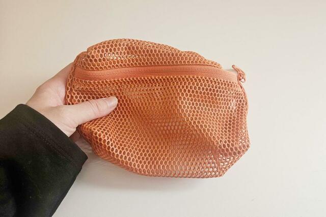 メッシュで中が見えるため、探しものもすぐに見つかります。通気性が良く、銭湯グッズなどの濡れたものも気兼ねなく入れられます。(uco)