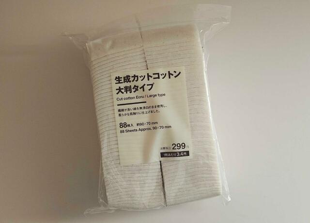 さらに忘れてはならないコットンも追加。88枚入っているし、大判だし。コットンも買っておけば、化粧水もポンプもすぐに使えます。