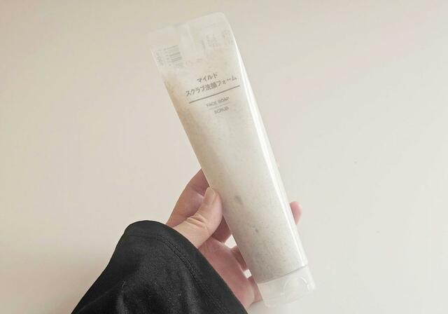 スクラブが配合された洗顔フォームです。中が見える透明のチューブタイプで、簡易的なパッケージと400円以下という価格に惹かれて手に取りました。