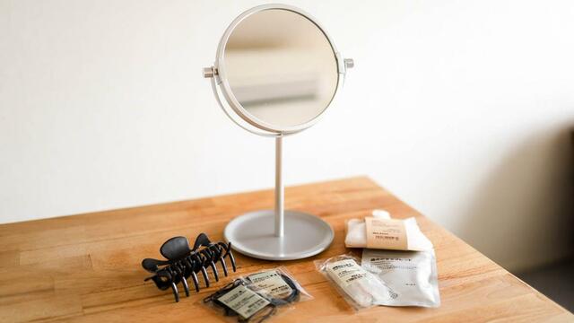 小と大の2種類があり、私は小をセレクト。コンパクトなので場所を取らず、なのに鏡面はしっかりと顔全体を見られるサイズでちょうどいい!