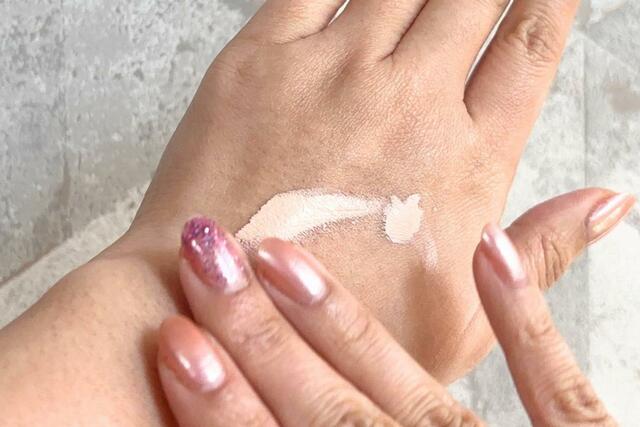 水分は少なめで、柔らかいクリームのようなテクスチャ。ピタッと肌につくような感じでしっかり密着するので、キレイに仕上がります。