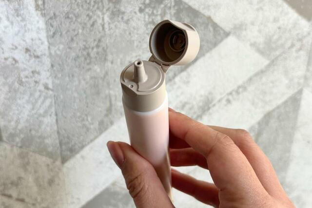 また、容器と一体化した蓋もいい感じ。ワンアクションで開けられるし、「うっかりキャップを落としてどこかに転がっていってしまった」なんてことにもなりません。