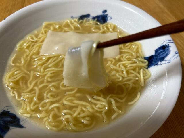 餅にラーメンの汁が染み込んでいて、かなりおいしい。