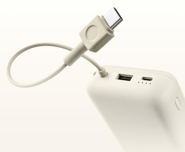 容量は10,000mAhで、スマートフォンを約2回フル充電可能。USB-C端子が本体に内蔵されており、ケーブルを持ち歩かなくてもそのまま充電できるのが便利なポイント。