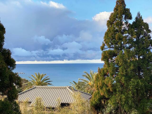 重たそうな色の雲の塊と水平線の間に白い帯。右に見えるのは大島。買い物ツアーに出かけたら水曜日だった。水曜日はすかなごっそ、充麦、高梨農園と贔屓にしている店の定休日が多い。明日の客人用の買い物に来たのに……残念なり。晴れているけれど、寒い、寒い、ほんとに寒い。風も強い。