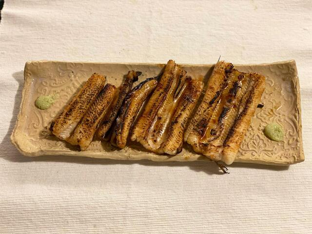 穴子の蒲焼き(残っていたうなぎのタレを使用しました)。美味しい、美味しい、日本食でした。