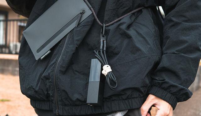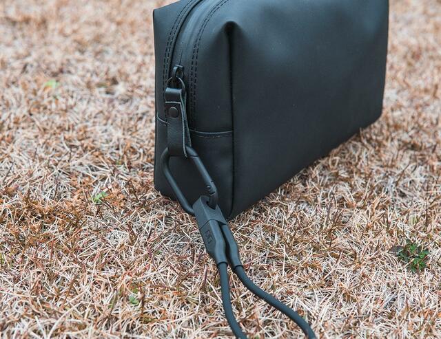 モバイルバッテリーと一緒に引っ掛けておくことで、瞬時の充電が可能に。このシームレスさは身軽なお出かけ時に大活躍です。