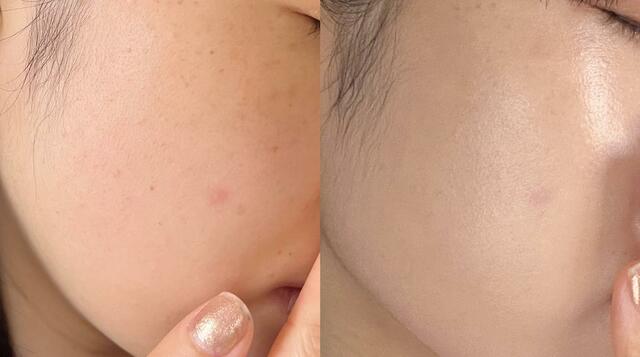毛穴をキレイにぼかしてくれて、ツヤ感がありながらもしっかりとカバーされているのが分かります。とはいえ素肌感もあり、とても自然です。
