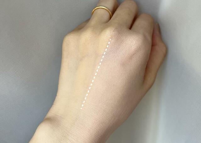 肌にピタッと留まるような感覚があり、薄膜で軽いつけ心地をしています。