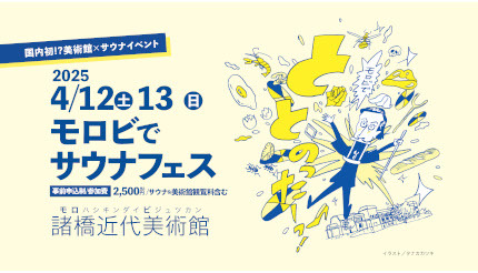 諸橋近代美術館(福島県耶麻郡北塩原村)は4月12日・13日に、「モロビでサウナフェス」を開催する。美術館で開催するサウナイベントとしては、国内初の試みとなる。開催時間は10時~17時で、最終入場は16時。参加費は、サウナ+美術館観覧料が2500円、サウナ+美術館観覧料にメルキュール大浴場をプラスすると3800円で、事前申し込みが必要。参加対象は高校生以上。