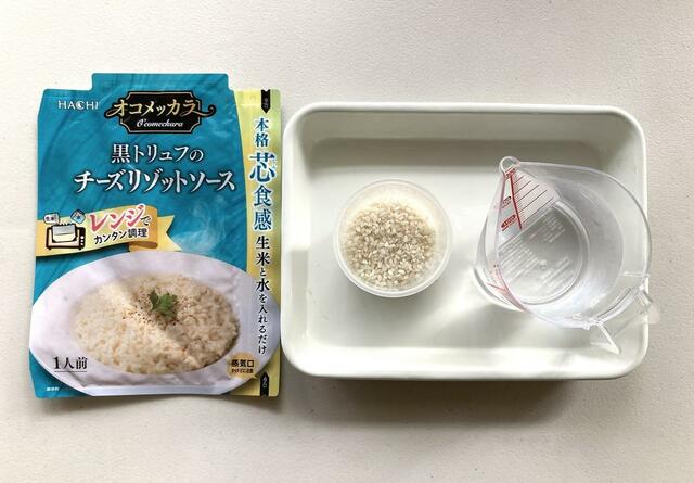 オコメッカラ1袋のほかにいるのは、お米1/2合と水200mlのみ。