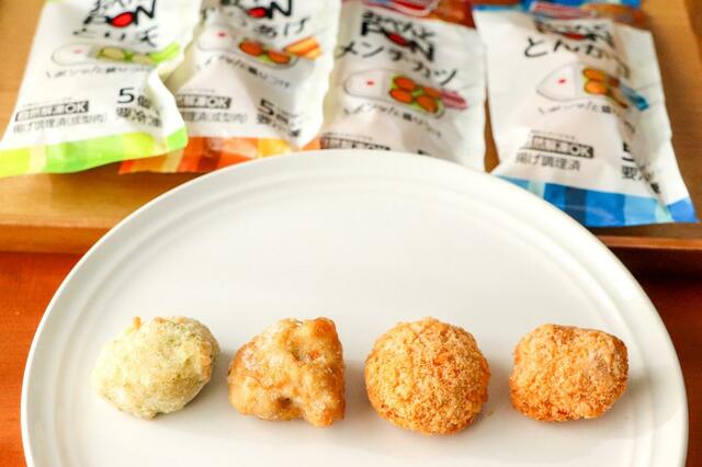 ラインナップはとんかつ、からあげ、メンチカツ、つくね、とり天の全5種類。どれもつくるのが大変&老若男女好きな方が多いおかずですよね。