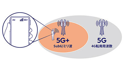 KDDIと沖縄セルラーは4月3日から、国内で初めて、高速・大容量な5G(Sub6/ミリ波)で通信していることを識別可能にする「5G+」のアンテナピクトを開始した。「5G+」のアンテナピクトは、一部の5G対応機種でSub6/ミリ波のどちらかで通信中に限り表示される。
