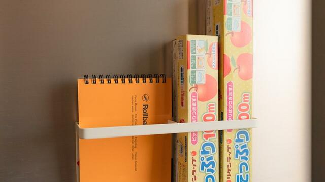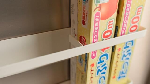 上段には、ラップやアルミホイルを収納できるスペースがあります。