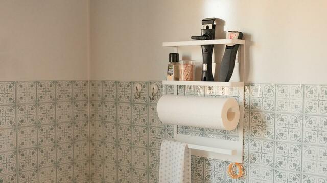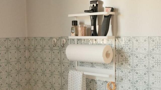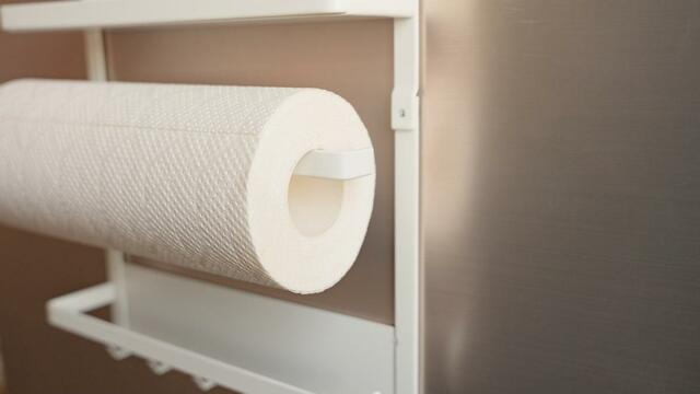 真ん中と下段には、2本のハンガーがついていて、キッチンペーパーをかけることができます。