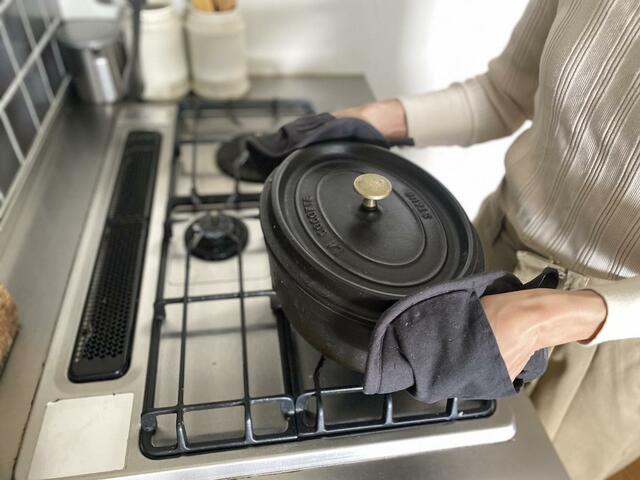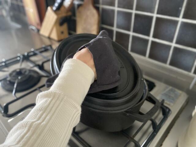 鍋の熱いフタや取っ手をつかむ時に必須の鍋つかみ。