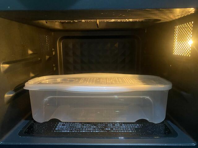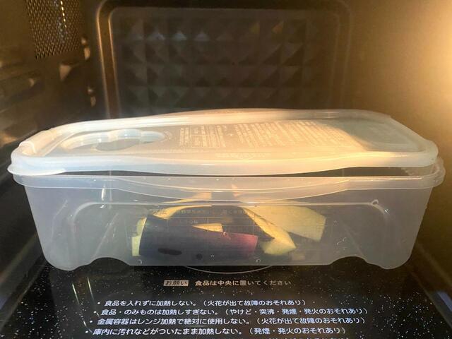野菜を調理する際は、容器に蓋をして少しずらすだけ。