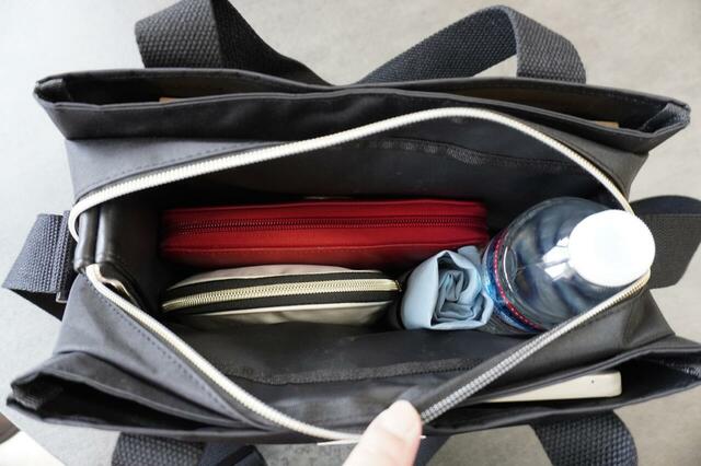 小物類は両サイドのポケットに収納できますが、内ポケットがないのでやや物足りなさを感じます。