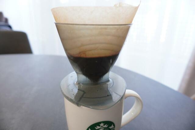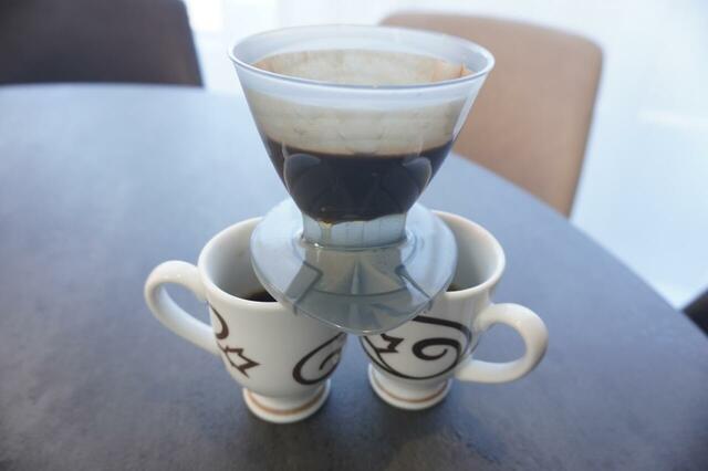 実際に2杯同時に入れてみましたが、カップの上に置いたフィルターはガタガタ動くこともなく、安定してドリップできました。