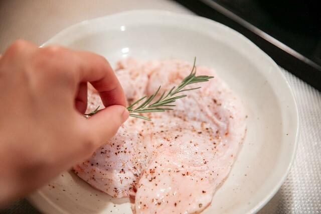 鶏肉の香ばしい香りと、ローズマリーのスパイシーかつ爽やかな香り。高火力で焼くことで「ジュ〜ッ!」という音と共に一気に解き放たれます。