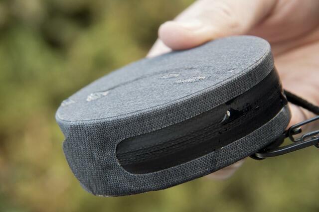 商品名にもあるように、耐水生地が使われているので試しに水を垂らしてみましたが染み込んでいく様子もなく、多少の雨なら問題なく凌いでくれそうです。