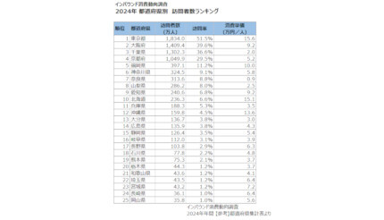 【気になる都道府県別ランキング・8】各種調査データをもとに、都道府県や市町村にまつわるランキングを紹介します。今回は、観光庁が公表しているインバウンド消費動向調査(旧 訪日外国人消費動向調査)から、都道府県別の訪問者数を紹介します。