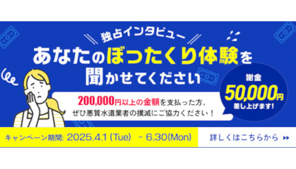 水道修理のセーフリー、20万円以上のぼったくり被害に遭った人を対象にインタビュー協力者を募集中
