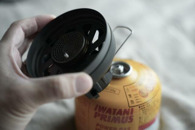 まずはバーナー部分を別売りのガス缶(OD缶)にくるくると回してセットします。