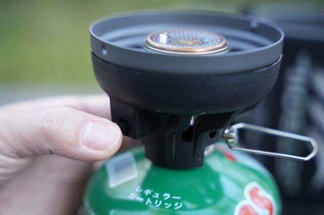 アウトドア用のバーナーの中には着火ボタンがないタイプのものもたくさんありますが、ジェットボイルは着火ボタンが付いているタイプ。