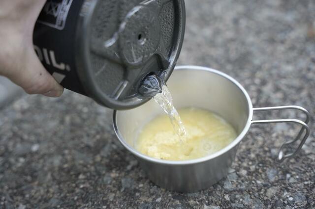 セットできたらガスを出しながら着火ボタンをカチッと押せば火がつくので、あとは水を入れたクッカーをセットしてあげれば準備OK。