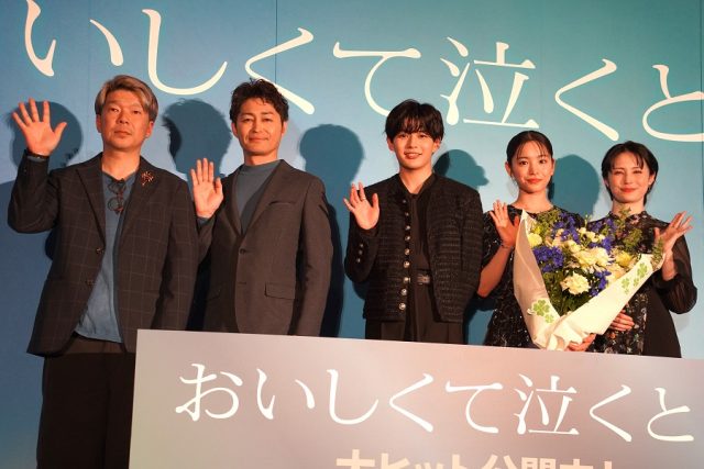 映画『おいしくて泣くとき』初日舞台あいさつが4月4日、東京都内で行われ、長尾謙杜(なにわ男子)、當真あみ、美村里江、安田顕、横尾初喜監督が登壇した。