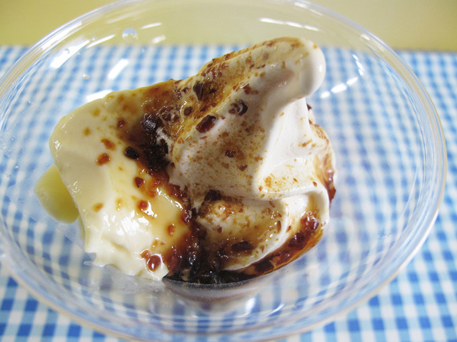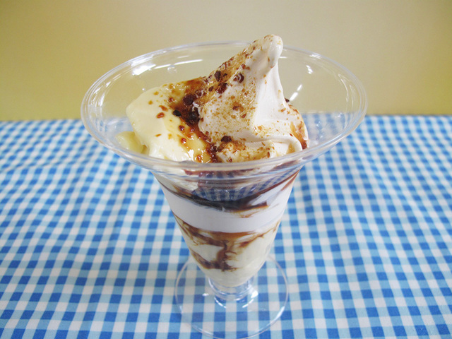 ソフトクリームに増したコクと旨みに合わせて、プリンは美味しい卵感ある仕上がりに。ソースもほろにがさが増し、プリンを引き立てています。
