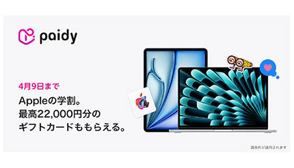 ペイディ、対象Mac/iPadの学生・教職員価格での購入で最大2万2000円分のギフトカードがもらえるキャンペーン