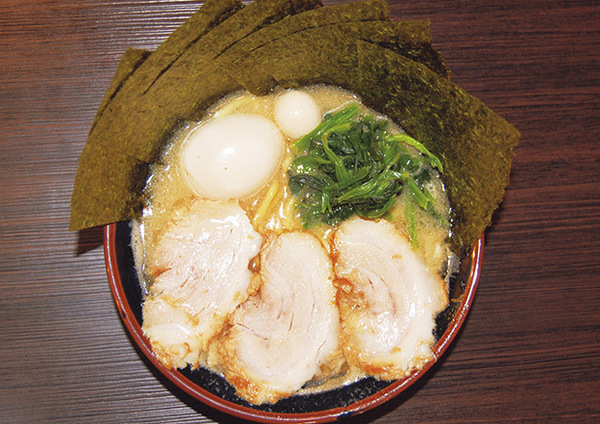 トンコツのダシに特製のカエシを加えたスープに太ストレート麺という家系の王道。卓上の調味料を加えればオリジナルの味に変身。まぜそばなど、豊富なメニューも魅力。